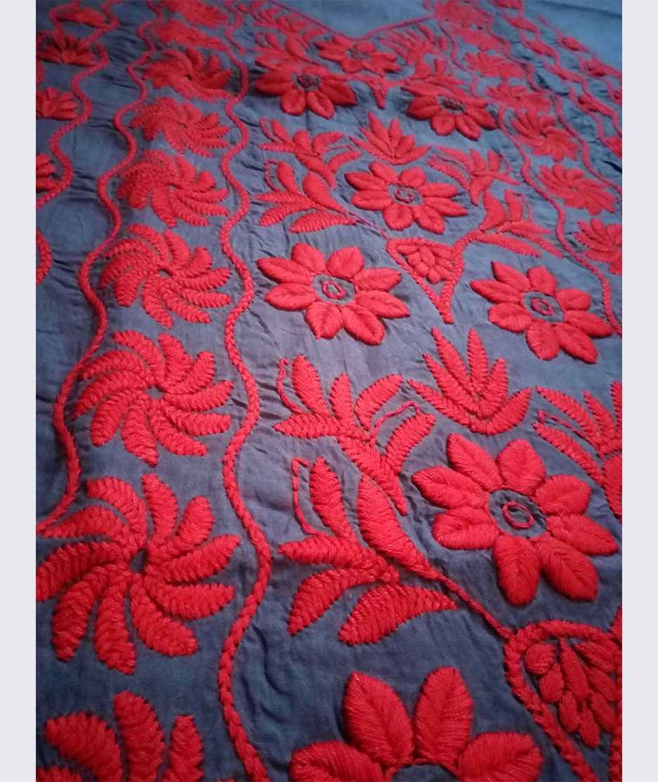 This is a heavy floral designed handmade one pcs which is really good product for ash/red lovers. The color combination of red and ash is always beautiful.