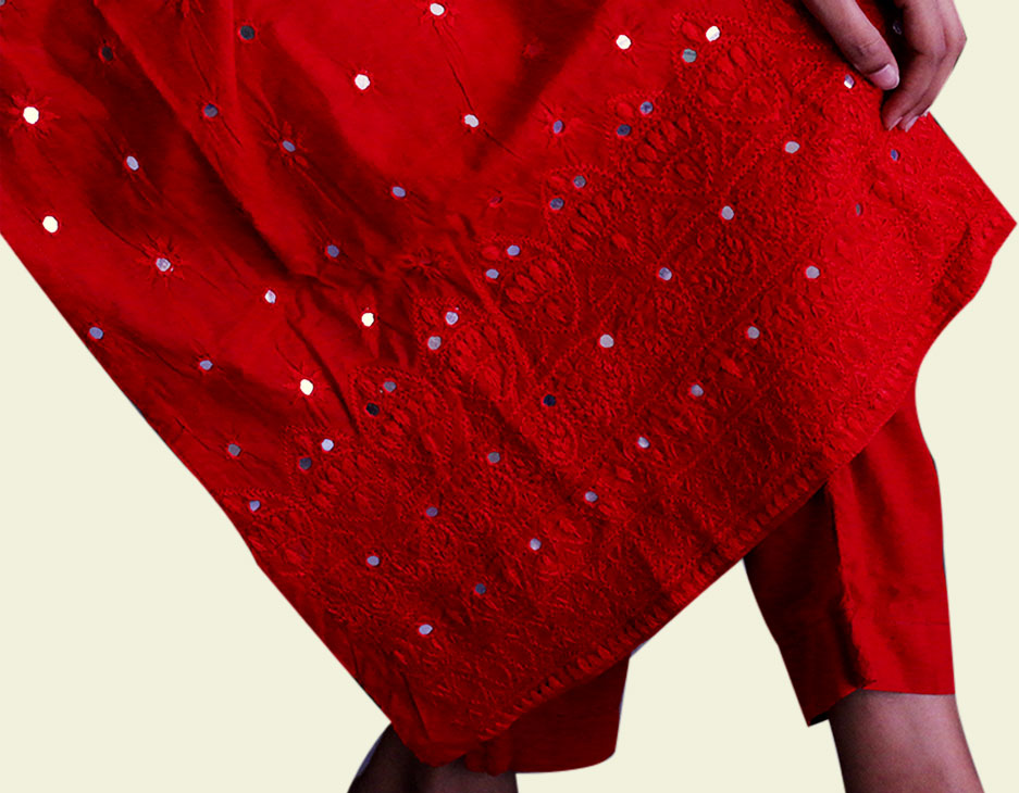 This product isn’t designed on traditional terms. the designs are called premium nakshi pattern. If you’re red lover then you must try this one. It’ll make you bold, gives you a luxury and bold look.
